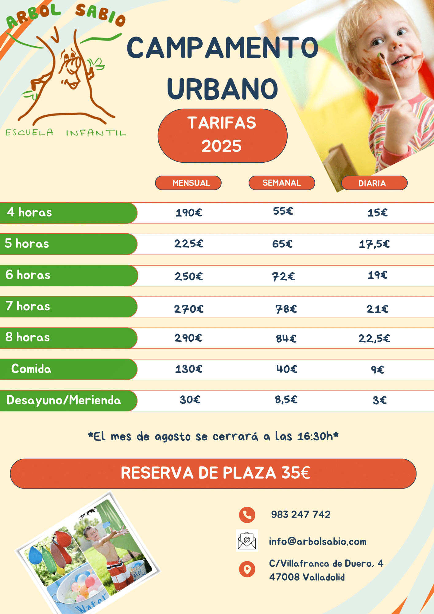 Puedes reservar tu plaza y consultar nuestras tarifas de campamentos.