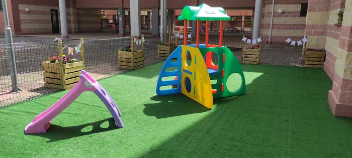 Disponemos de 150 m2 de patio exterior para que los mas pequeños disfruten a lo grande.